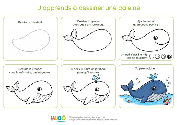 Prêt à plonger dans les profondeurs de l'océan avec tes crayons ? Avec ce tutoriel Hugo l'escargot, apprendre à dessiner une adorable baleine devient un vrai jeu d'enfant !