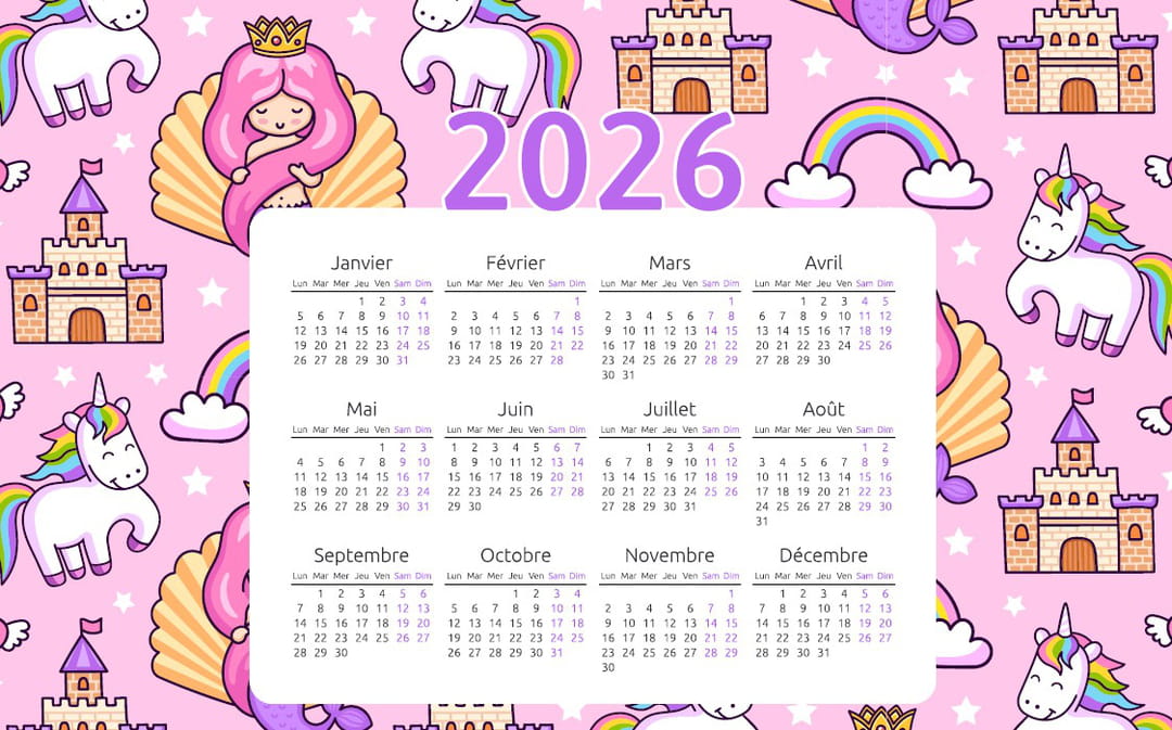 Calendrier 2026 avec d'adorables motifs Kawaii