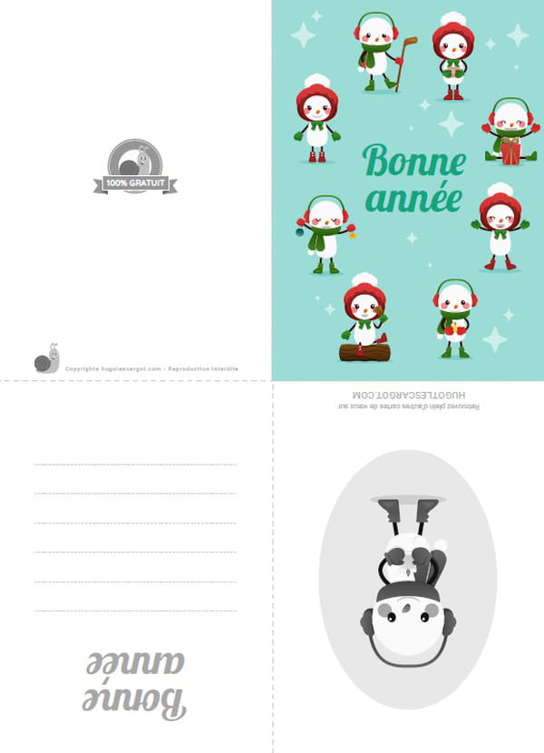 Ces adorables bonshommes de neige sont parés pour l'hiver et se sont tous réunis pour souhaiter une belle et douce année. Imprimez cette carte de vœux et ajoutez un petit message pour la faire parvenir à toute la famille.
