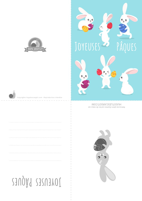 Les lapins aussi ont le droit de participer à la traditionnelle chasse aux œufs de Pâques. Avec cette jolie carte, souhaitez une joyeuse fête à vos amis et votre famille !