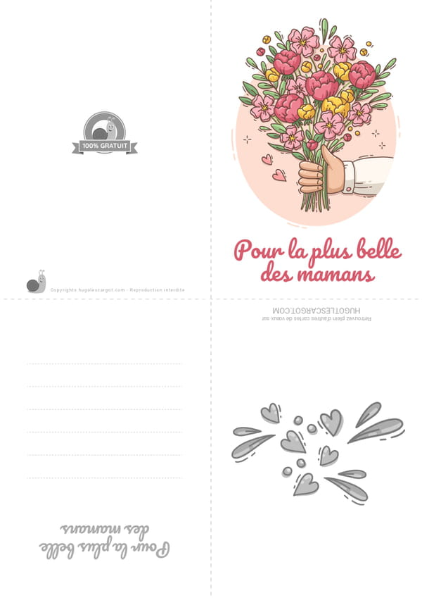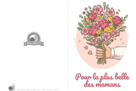 Entre le joli bouquet de fleurs coloré et le texte "pour la plus belle des mamans", cette carte fera forcément son petit effet pour la fête des mères. Il ne te reste plus qu'à ajouter ton petit mot dedans, et le tour sera joué !