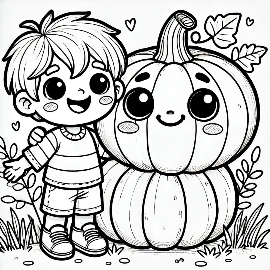 Ce petit garçon est prêt à célébrer les fêtes d'Halloween avec son amie la citrouille. À vos crayons pour lui donner quelques couleurs...