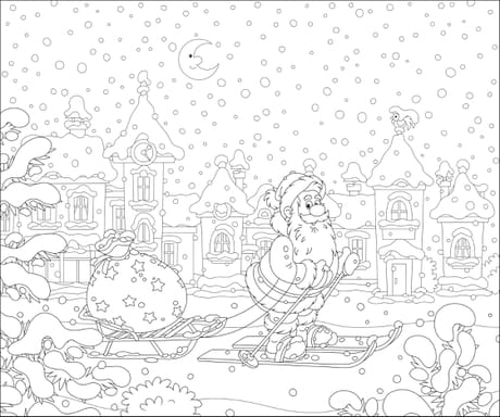 Il semble que les rennes soient en retard... alors le père Noël doit traîner tout seul sa hotte pleine de jouets. Mais heureusement, il peut glisser sur ses skis pour aller plus vite et livrer ses cadeaux à temps !