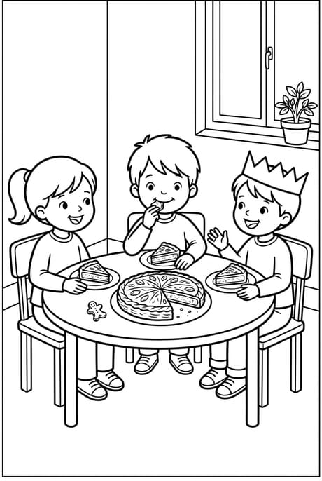 Pour célébrer l'Épiphanie et honorer les Rois Mages, ces trois enfants se sont installés à table pour déguster une délicieuse galette frangipane. Et l'un d'eux a obtenu la fameuse fève, et la couronne qui va avec !