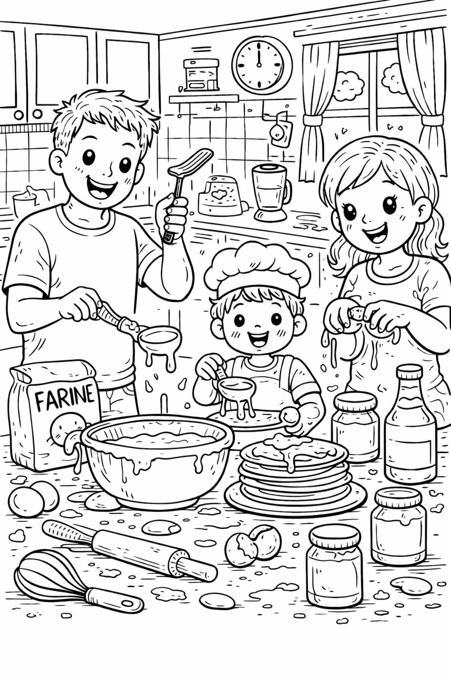 Cette famille a décidé de se rassembler en cuisine pour préparer des crêpes à l'occasion de la Chandeleur. Et malgré le désordre, tout le monde a hâte de goûter ces délicieuses gourmandises sucrées !