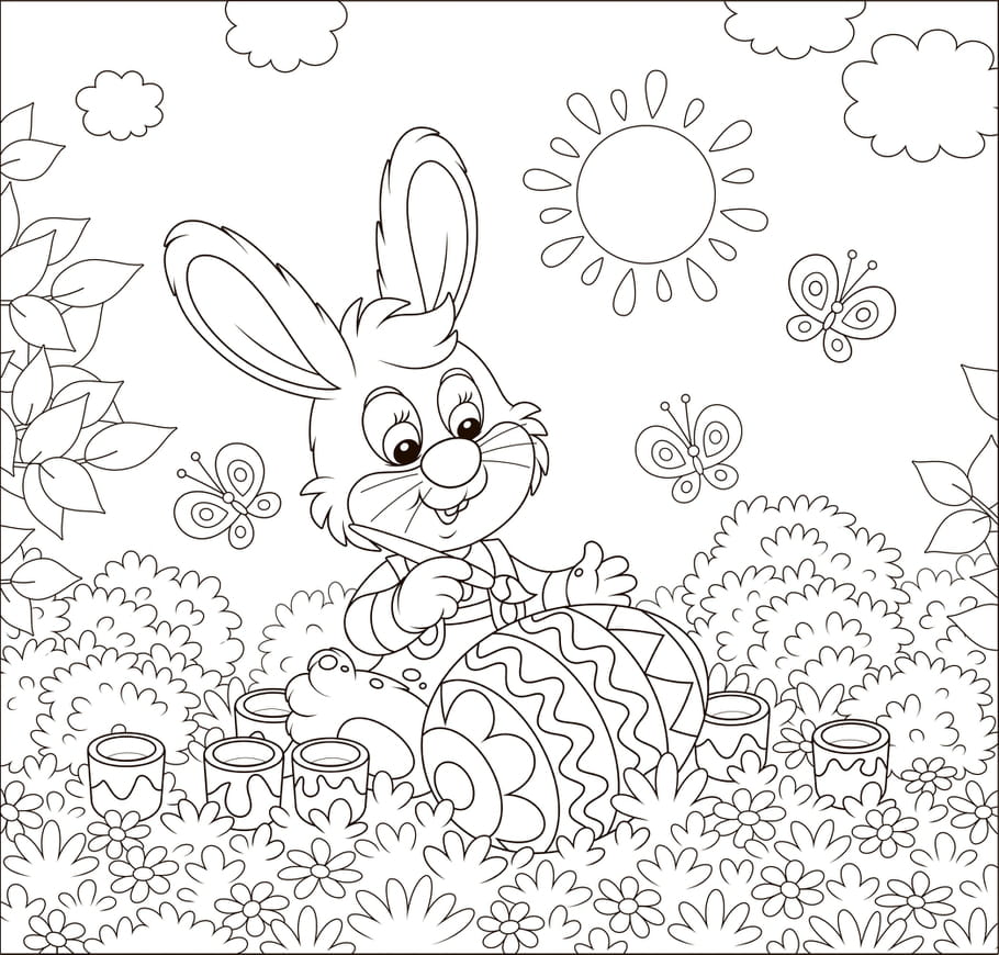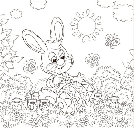 Avant les fêtes de Pâques, il faut penser à peindre les œufs ! C'est ce que fait ce lapin, mais il lui faut ton aide pour ajouter les couleurs.