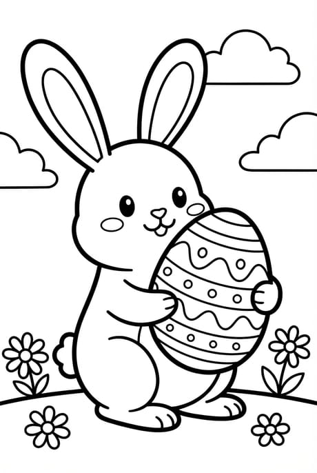 Ce lapin tout mignon tient précieusement son œuf. Avec des traits épais et peu de détails, ce coloriage est idéal pour les tout-petits, dès la maternelle.