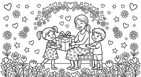 À la fête des mères, on fait souvent un cadeau : mais tu peux aussi lui offrir ce coloriage que tu auras fait toi-même, et elle sera sûrement très contente.