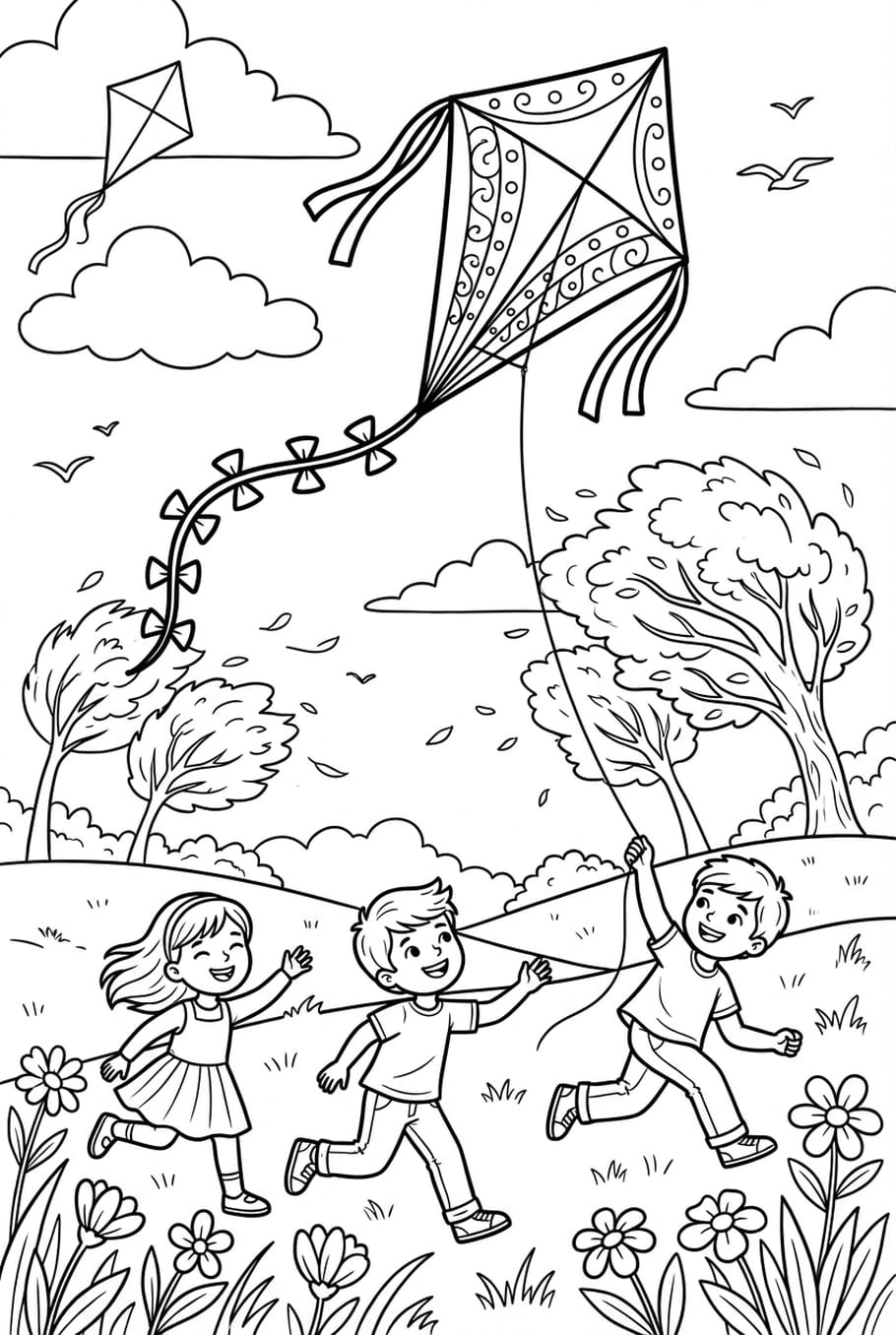 Le printemps est arrivé, et avec lui, c'est l'occasion de ressortir les cerfs-volants ! Ces enfants l'ont bien compris, et profitent de la brise printanière pour le faire décoller.