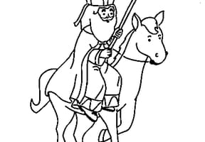 Coloriage magique du père Noël tenant sa hotte de cadeaux